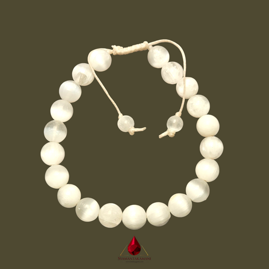 Step into a realm of high-vibration energy and cleansing power with this exquisite Natural Selenite Bracelet. Crafted with smooth, luminous 8mm beads, this piece offers a beautiful, milky-white glow that symbolizes spiritual light and purity. Note: Please carefully handle this bracelet as Selenite is a very soft material and is...