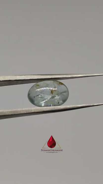 Presenting a beautiful 3.50-carat natural aquamarine cabochon, a gem that embodies the serene beauty of the ocean. This oval-shaped gemstone, with dimensions of 11.9mm x 8.2mm x 5.0mm, is a testament to the raw and untouched elegance of nature.