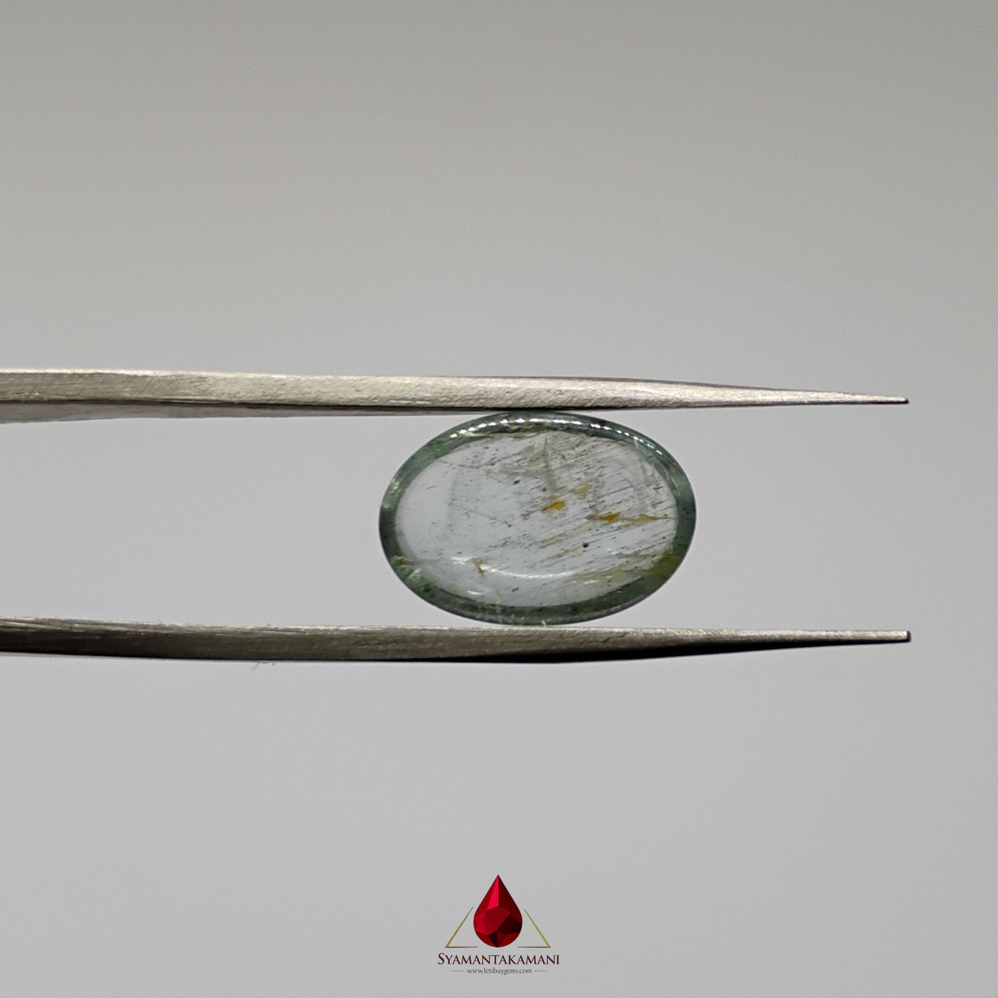 Presenting a beautiful 4.40-carat natural aquamarine cabochon, a gem that embodies the serene beauty of the ocean. This oval-shaped gemstone, with dimensions of 14.1mm x 9.6mm x 4.3mm, is a testament to the raw and untouched elegance of nature.