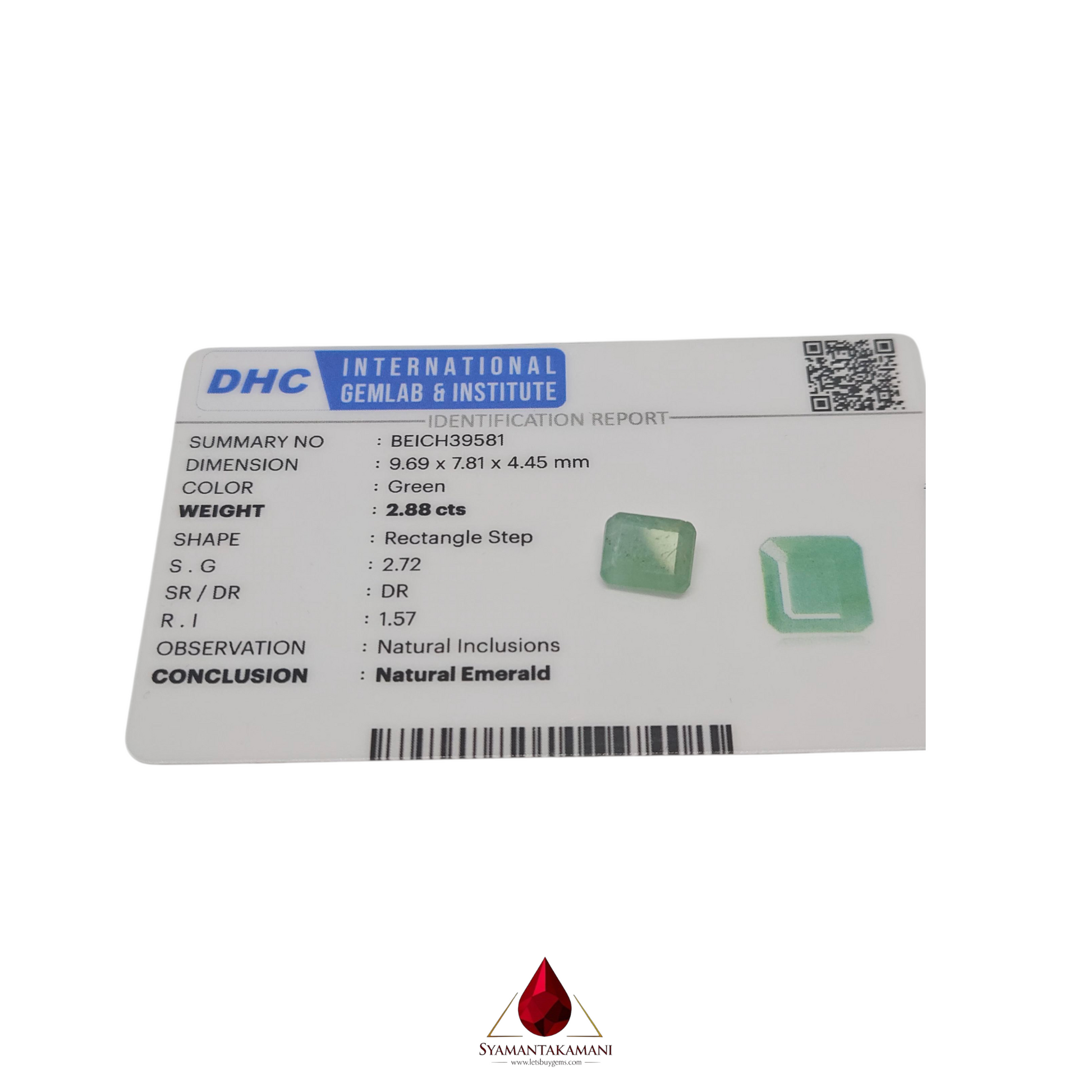 Presenting a spectacular 2.88-carat natural Emerald, a gem that embodies prestige and verdant splendor. This rectangle mixed-cut gemstone, with impressive dimensions of 9.7mm x 7.8mm x 4.5mm, is a powerful example of one of the world's most desired jewels.