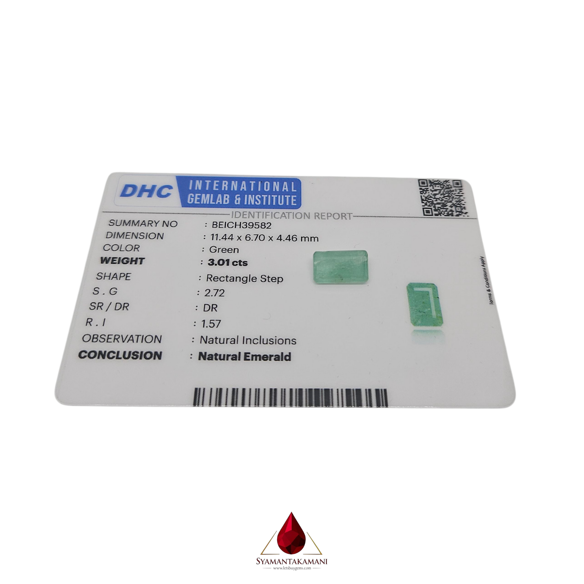 Presenting a spectacular 3.01-carat natural Emerald, a gem that embodies prestige and verdant splendor. This rectangle mixed-cut gemstone, with impressive dimensions of 11.4mm x 6.7mm x 4.5mm, is a powerful example of one of the world's most desired jewels.