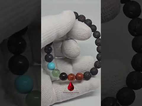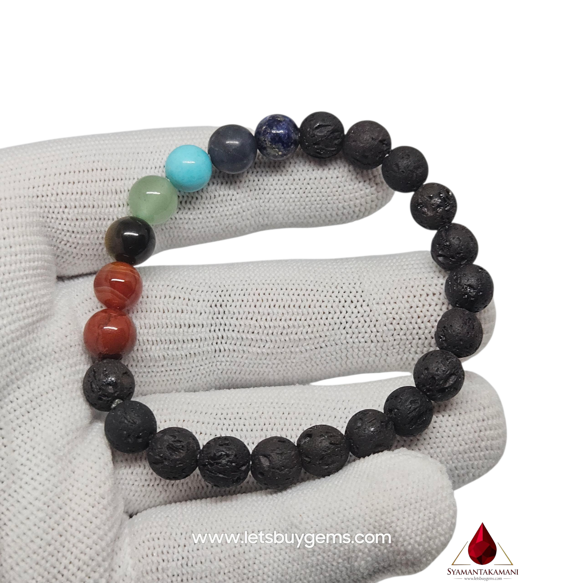 The bracelet features porous Lava Stone, an ancient material known for its powerful grounding properties and its unique ability to absorb and diffuse essential oils, turning your jewelry into a personal aromatherapy diffuser. Interspersed among the black lava beads are the seven distinct gemstones, each one meticulously chosen to align with one of the body's seven main energy centers (Chakras), promoting balance and holistic wellness.