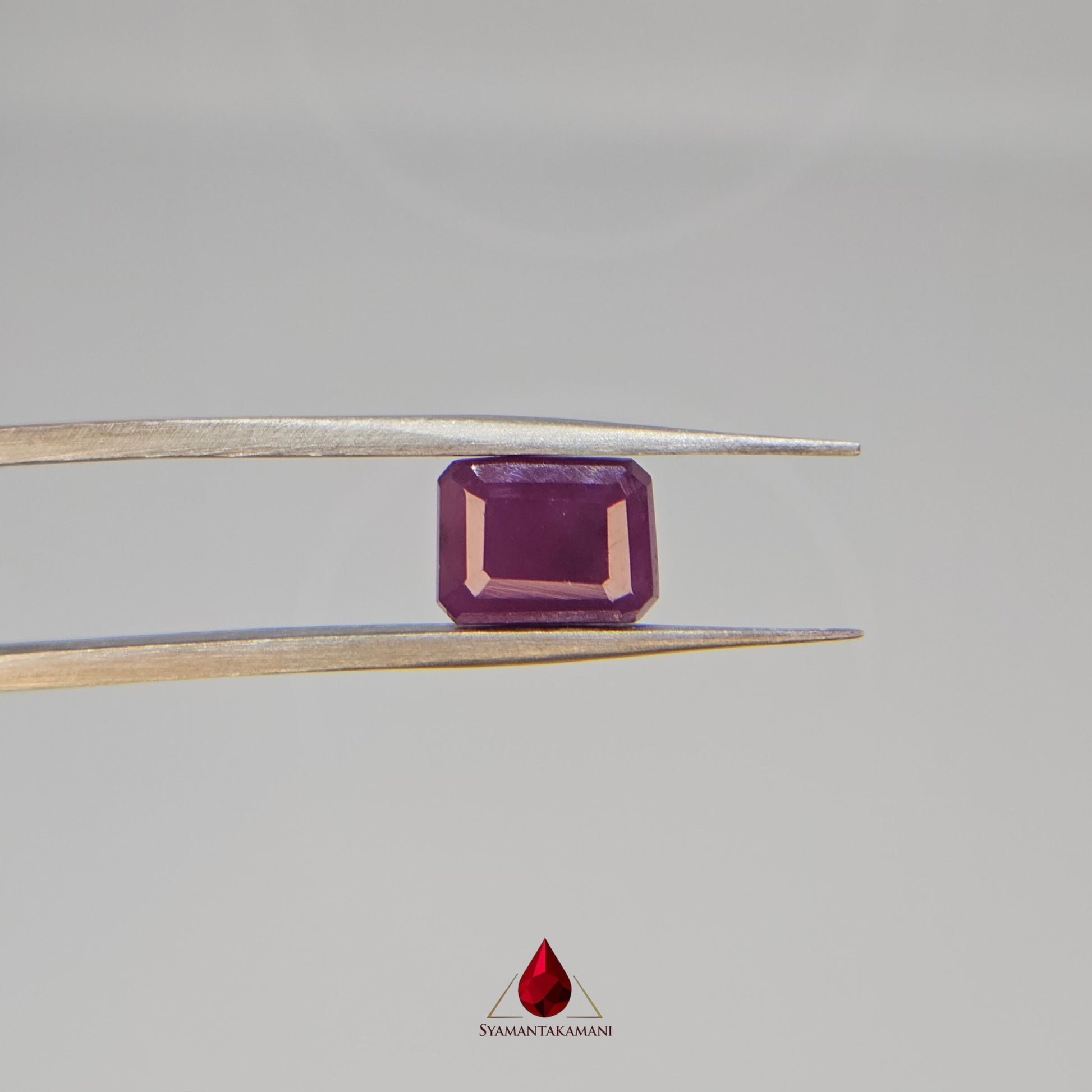 Discover the significant heritage and beautiful color of this magnificent 4.05-carat Natural Ruby, a truly exceptional stone sourced directly from the storied mines of Karnataka, India. This commanding gemstone features a large presence, cut into an elegant Rectangle Step Cut with dimensions of 8.5.