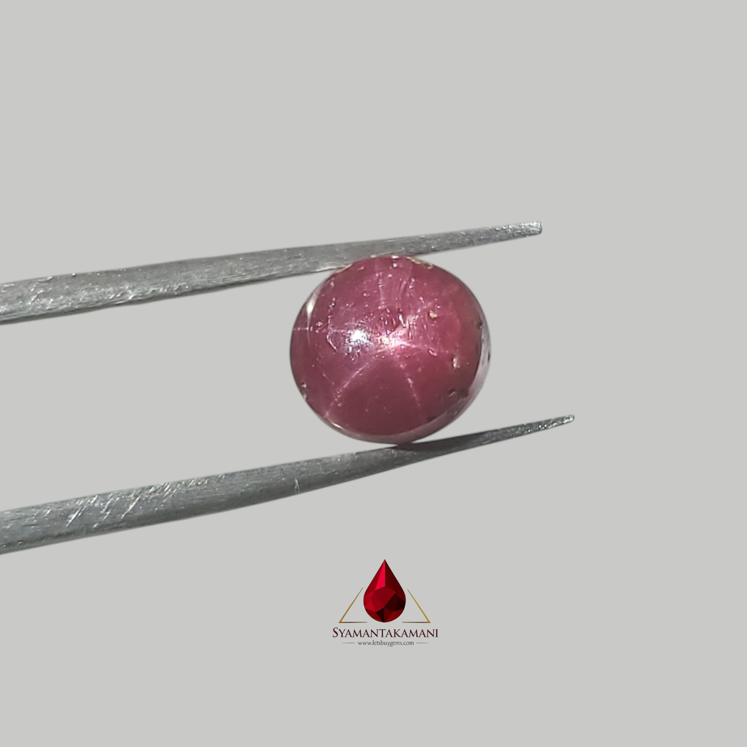 Sourced from the historically significant Mysore mines, this gemstone carries a legacy of producing some of the world's finest star rubies. Its deep, rich pinkish-red hue is complemented by a crisp and well-defined six-ray asterism, a phenomenon that glides across the gem's surface as it moves in the light. This captivating star effect makes it a perfect centerpiece for a ring or a pendant, sure to draw attention and admiration.