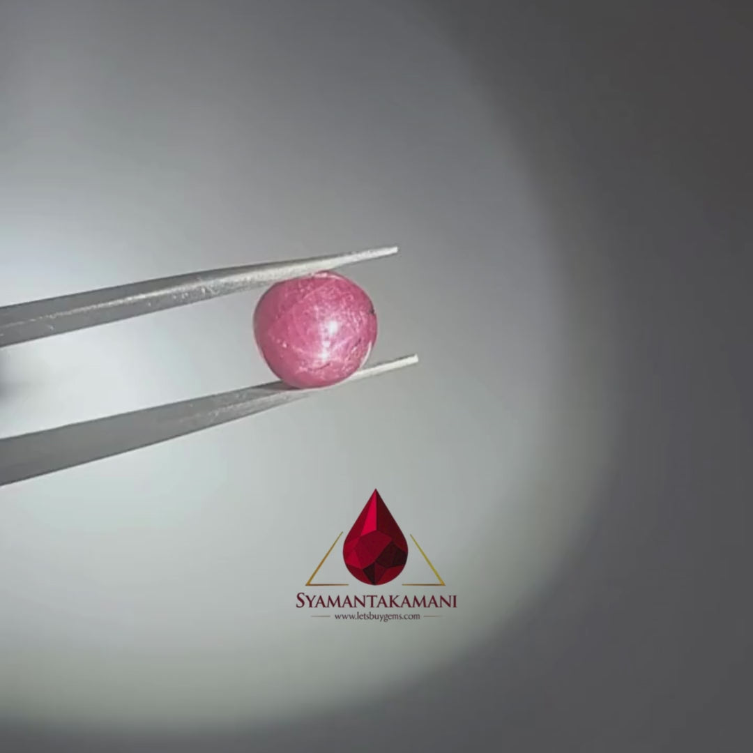 Sourced from the historically significant Mysore mines, this gemstone carries a legacy of producing some of the world's finest star rubies. Its deep, rich pinkish-red hue is complemented by a crisp and well-defined six-ray asterism, a phenomenon that glides across the gem's surface as it moves in the light. This captivating star effect makes it a perfect center piece for a ring or a pendant, sure to draw attention and admiration.
