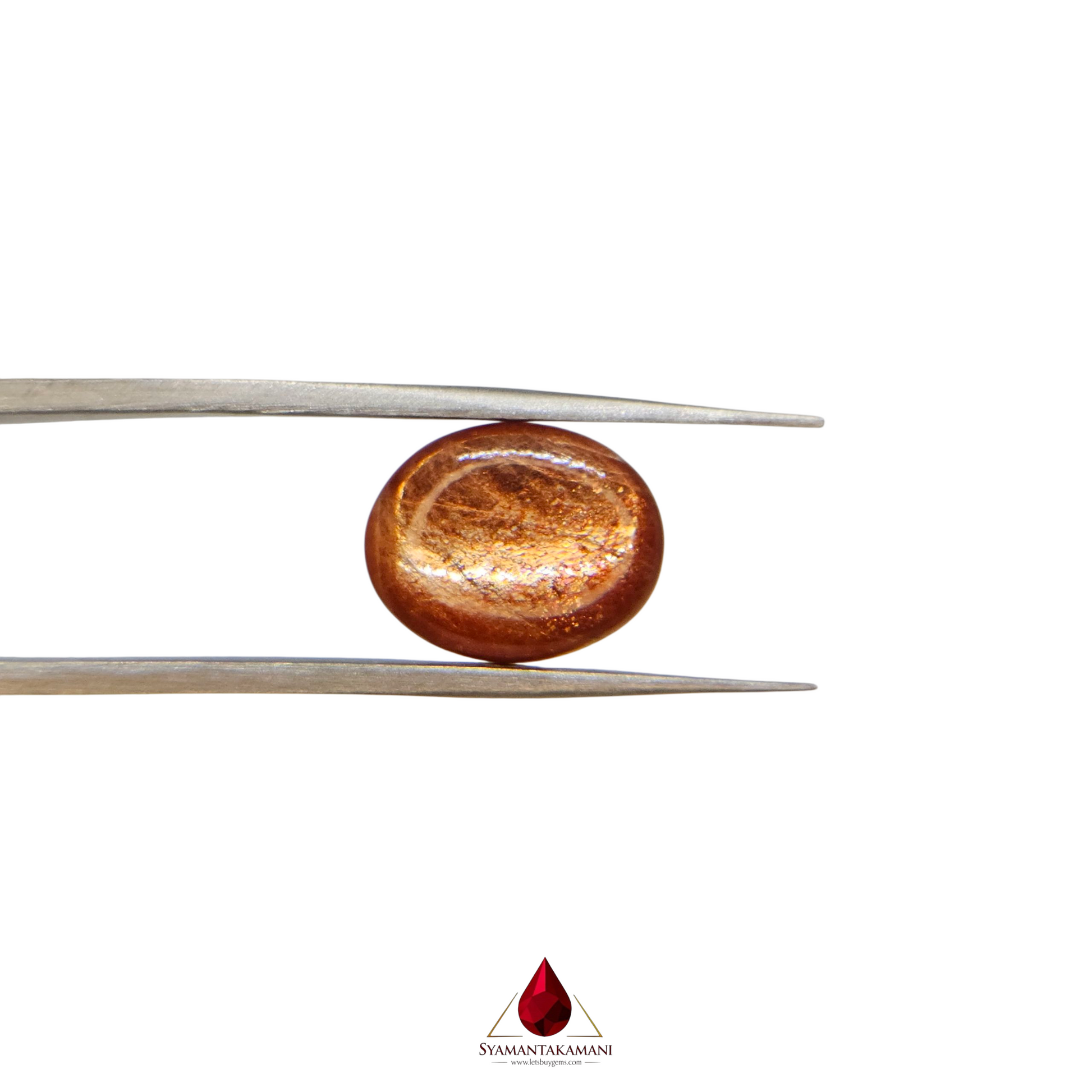 Capture the warmth and brilliance of the sun with this exquisite 4.45-carat natural Sunstone, a vibrant gem sourced from the historic mines of Odisha, India. This beautiful oval-shaped stone, measuring 13.5mm x 10.5mm x 3.2mm, is a true testament to the unique geological treasures of the region.